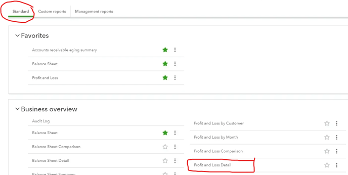 Step 2 - Select the 'Profit and Loss Detail' Report
